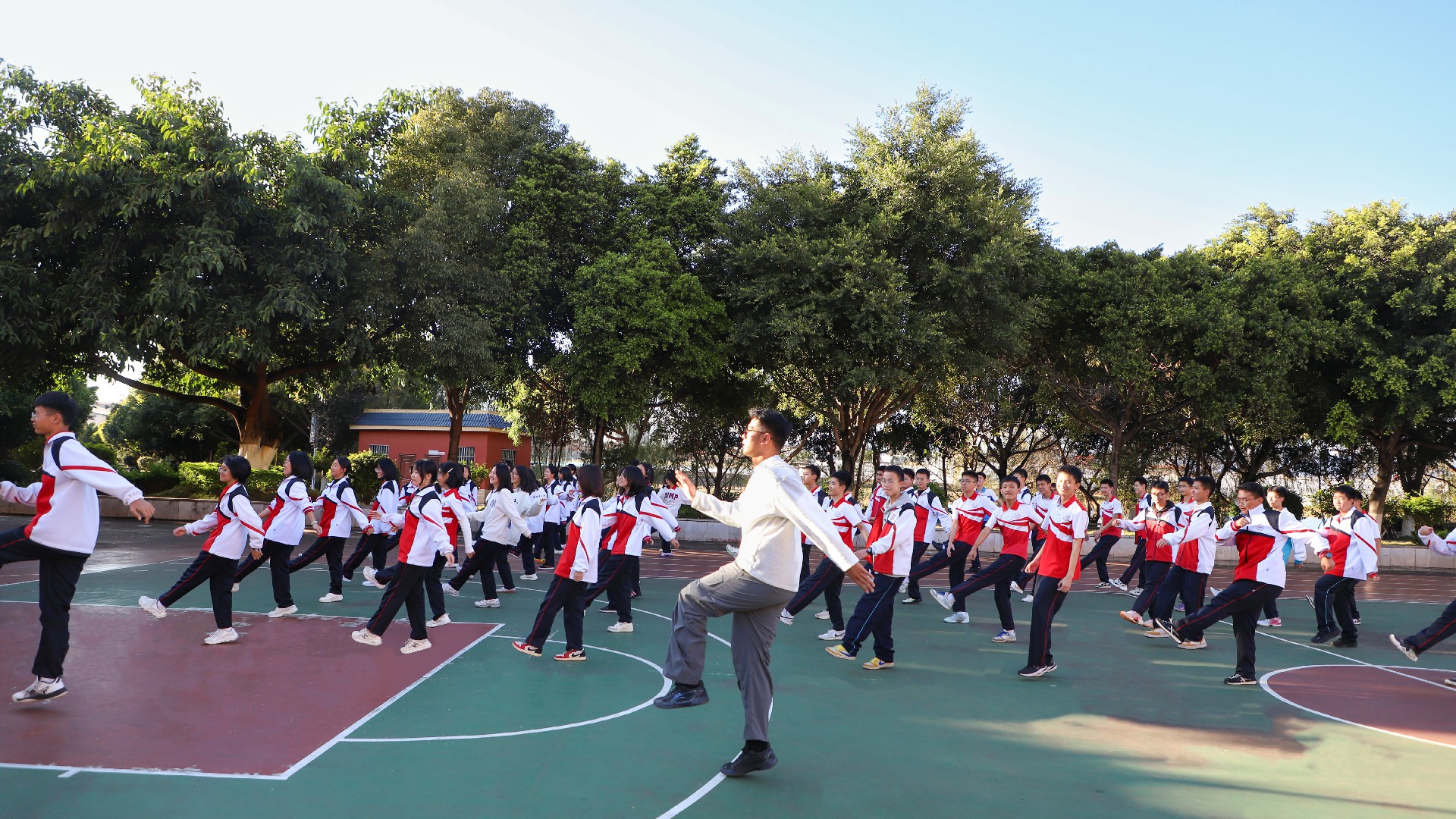 音乐响起,文化的种子便已悄然浸润心田;舞步飞扬,青春的活力在此刻尽情迸发。踏地为节、携手而舞间,同学们舒展身心、强健体魄,让课间成为绽放青春、提升体能的活力时光,更成为一堂生动的民族文化体验课,让优秀传统文化在青春的舞步中得以传承与活化,让民族团结的种子在欢声笑语中深深扎根。